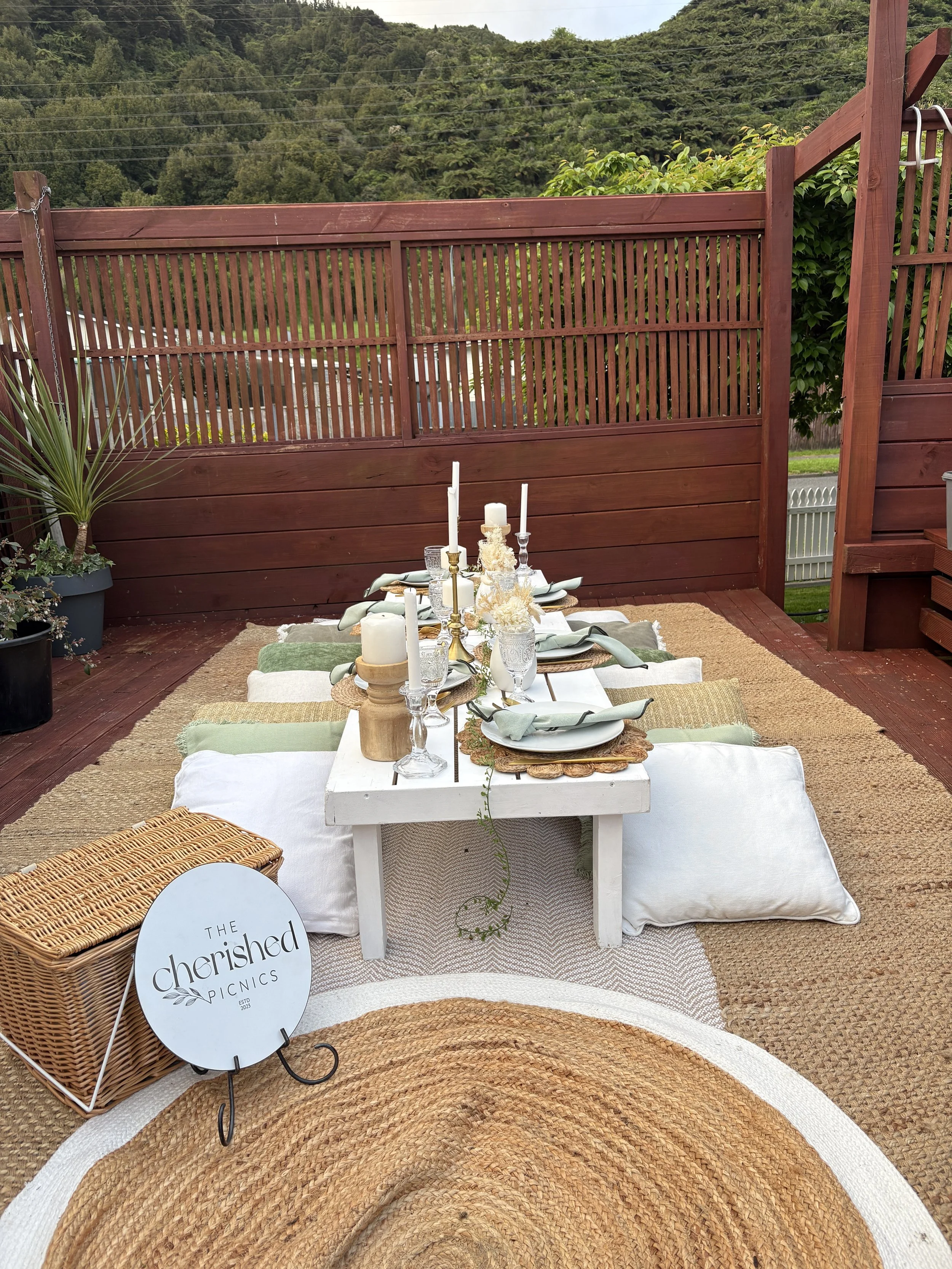 Olive You PicnicPicnic Colours : Olive Green, Sage Green, White, Cream, Browns book a picnic The Cherished Picnics NZ Book a PicnicPicnic Packages Picnic ThemesAbout Us Contact UsEmail: hello@thecherished.co.nz Subscribe Sign up with your email address to receive news and updates. We won’t bombard you with emails Email Address Sign Up We respect your privacy. Thank you!